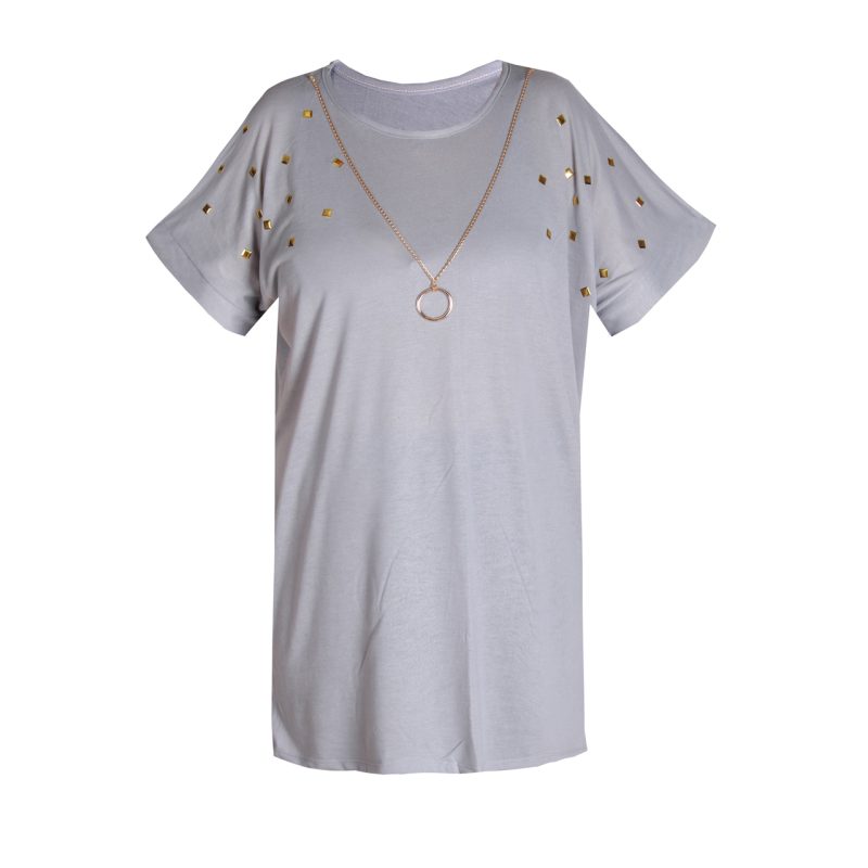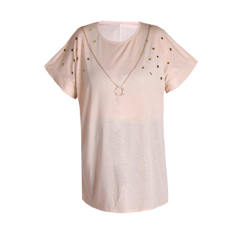 بلوز زنانه ویسکوز دور یقه زنجیر و سنگ دوزی