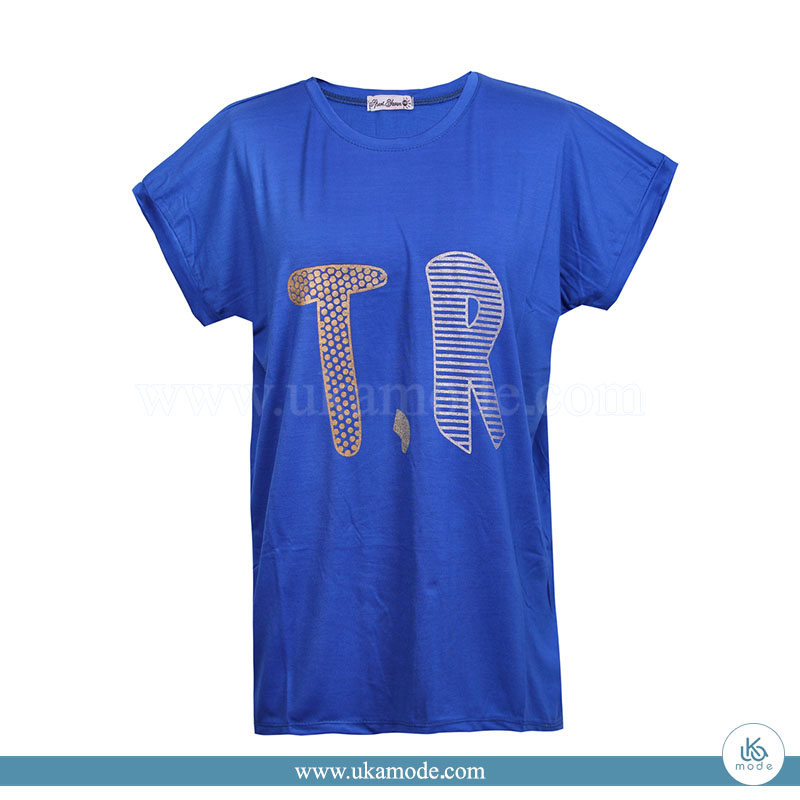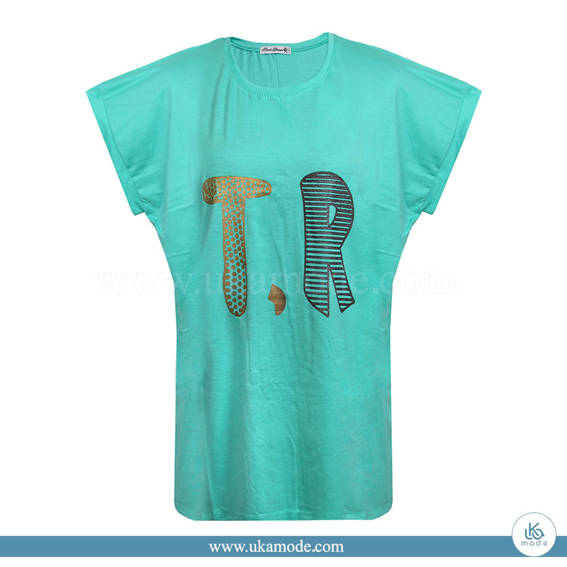 تاپ زنانه آستین افتاده ویسکوز سایز بزرگ چاپ T R