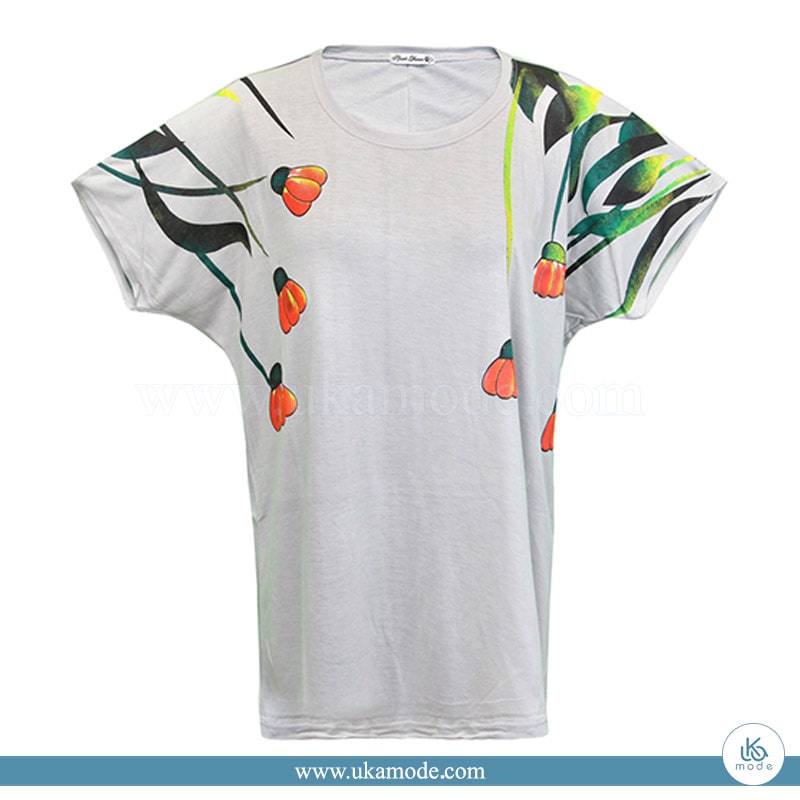 تاپ زنانه آستین افتاده سایز بزرگ ویسکوز چاپ گل
