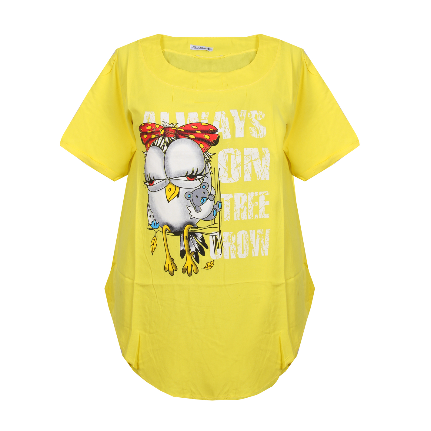 تونیک زنانه نخی سایز بزرگ آستین دوبل هلالی چاپ جوجه و گربه