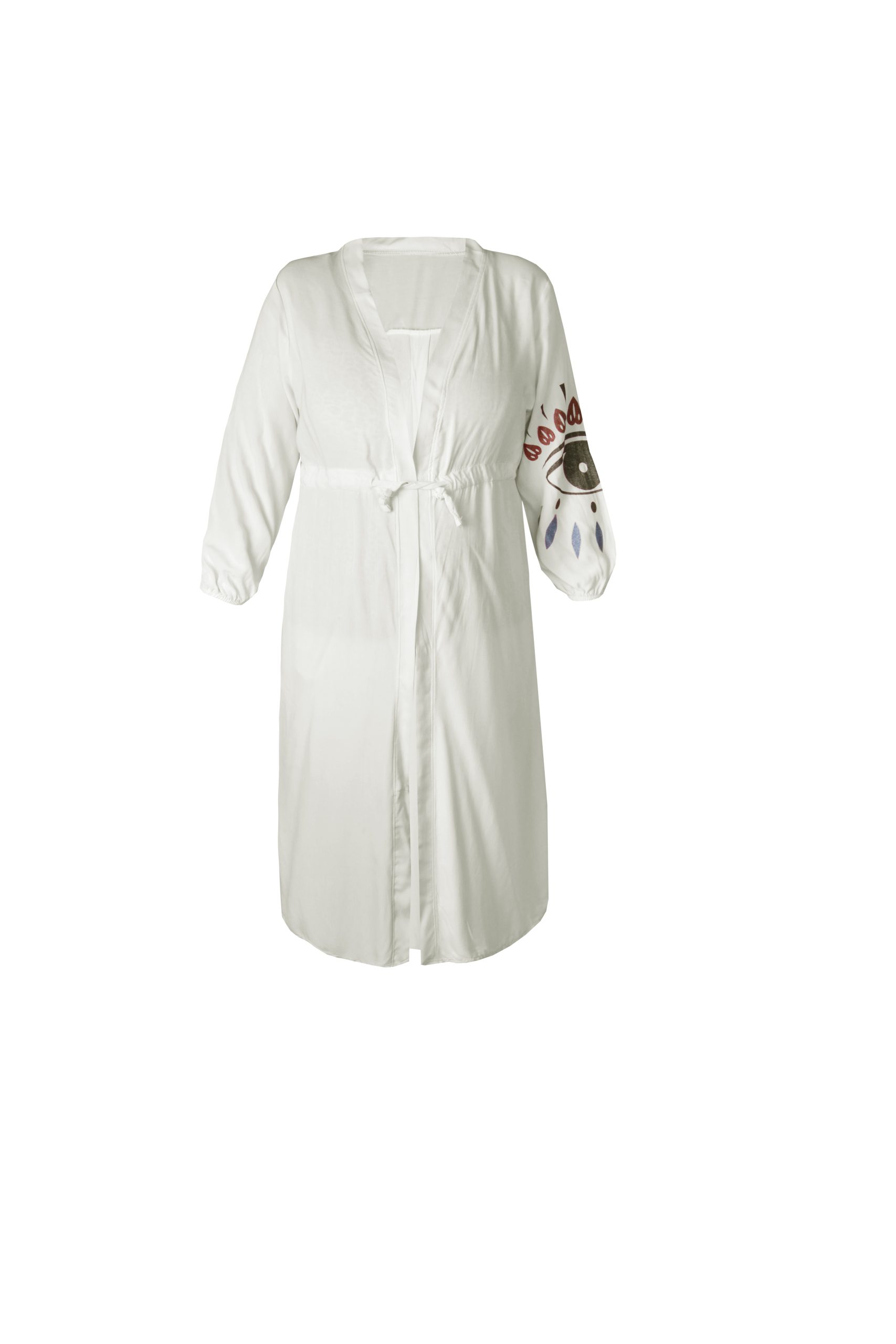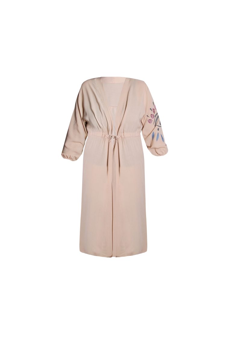 مانتو زنانه نخی کمر و سرآستین کش آستین طرحدار