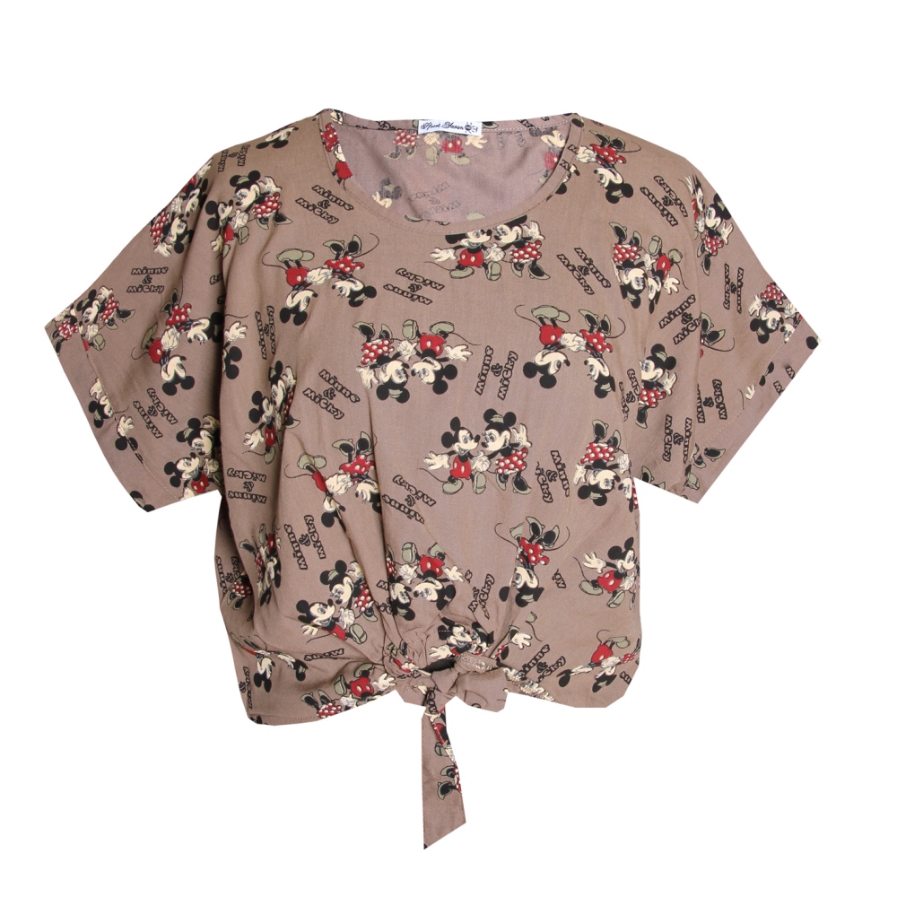 تاپ زنانه نخی تمام چاپ ساعت دمپا کش یقه دلبری بندی